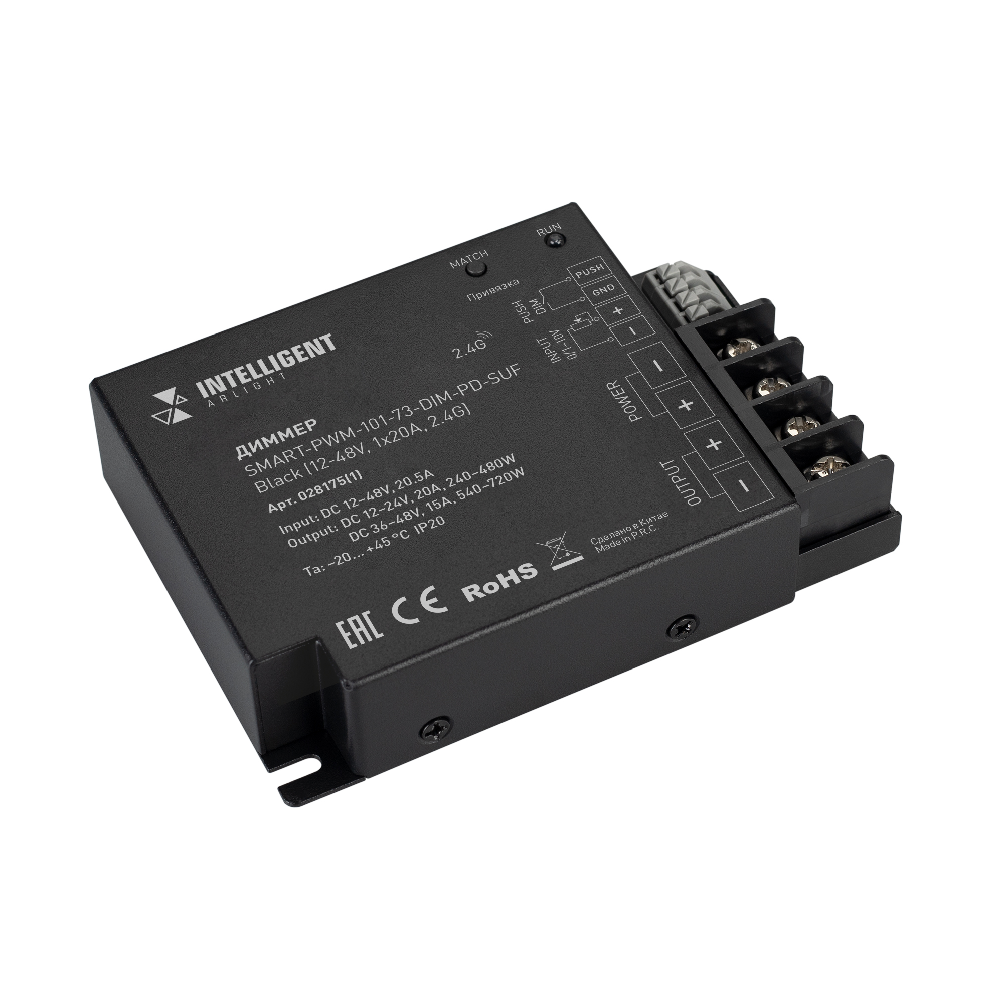 INTELLIGENT ARLIGHT Диммер SMART-PWM-101-73-DIM-PD-SUF Black (12-48V, 1x20A, 2.4G) (IARL, IP20 Металл, 5 лет) 028175(1) в Пензе