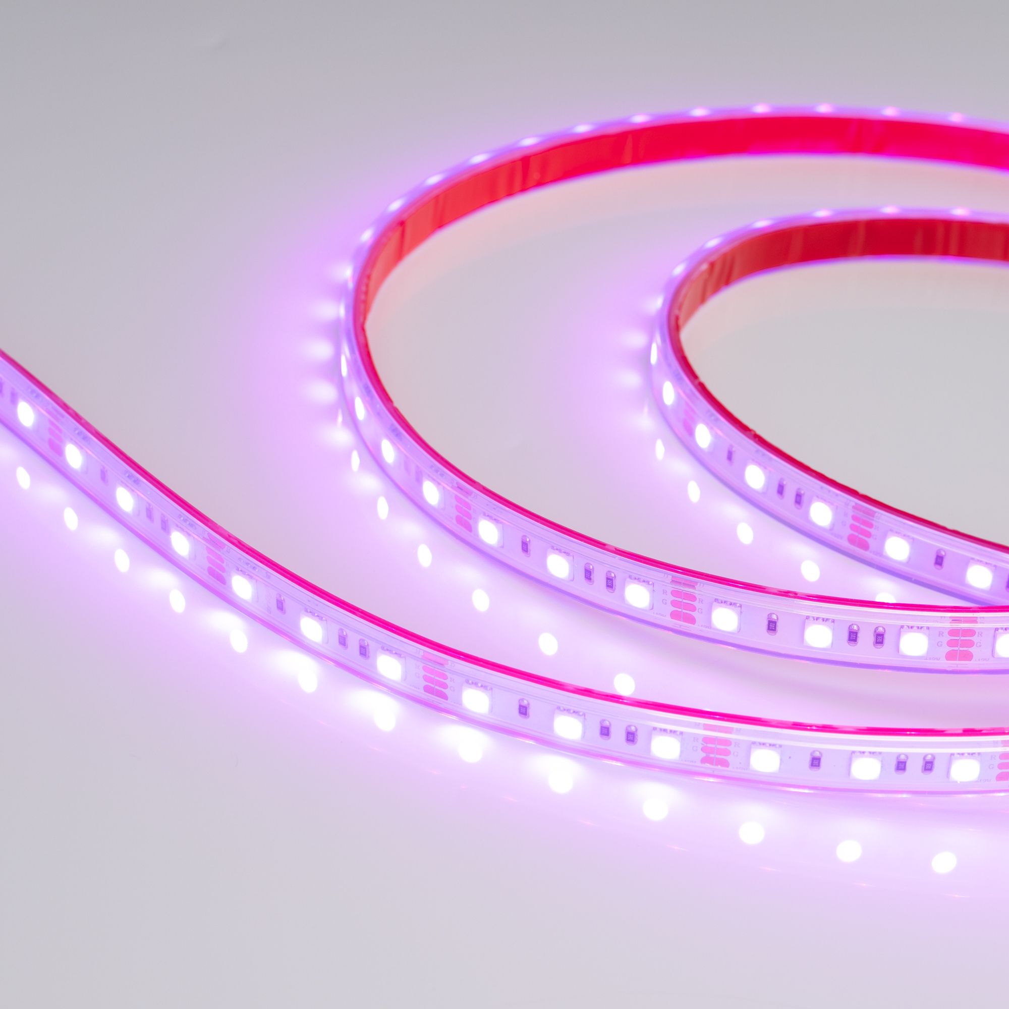 Герметичная мультицветная лента LUX шириной 13 мм с высокой степенью пылевлагозащиты IP66 (в силиконовой трубке) и RGB-светодиодами SMD 5060 (60 шт/м). Мощность 14.4 Вт/м, напряжение питания 12 В. Широкий шаг между светодиодами создает эффект видимых точек светодиодов. Освещение интерьеров и создание декоративной подсветки. Использование во влажных помещениях. Оформление наружной рекламы и витрин. Управляется RGB-контроллером. Минимальный отрезок 50 мм (3 светодиода).