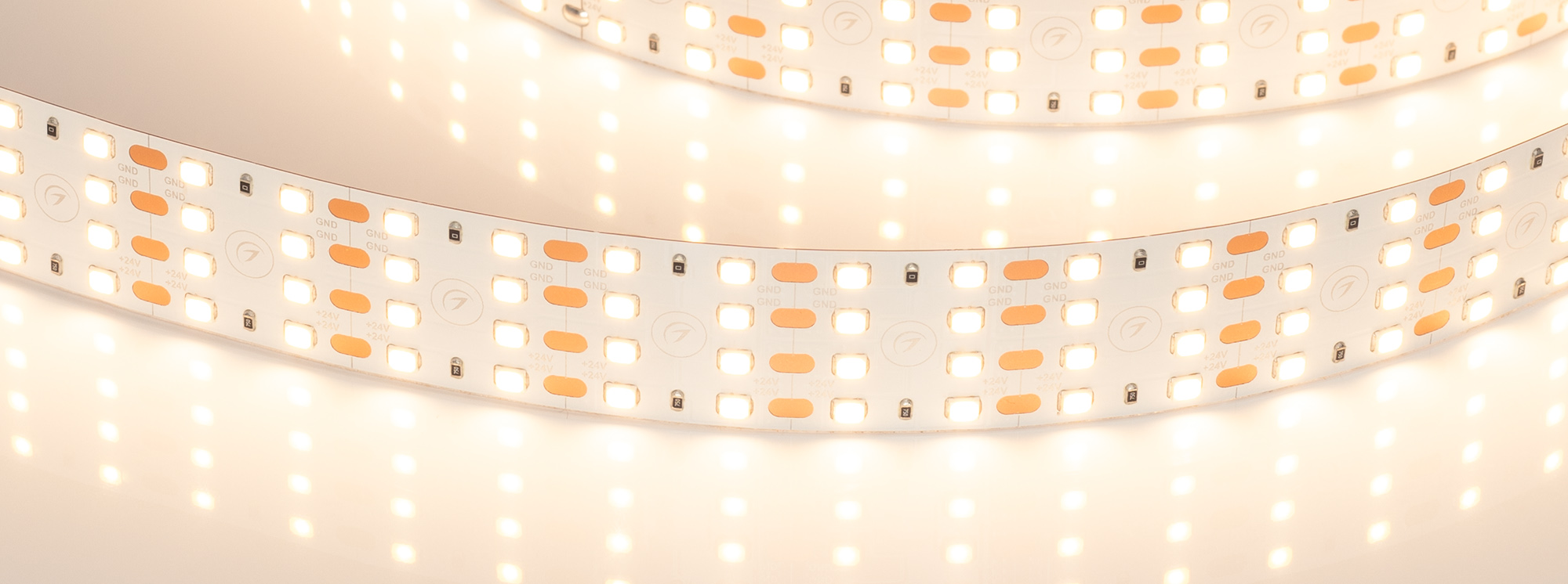 Светодиодная широкая лента UL серии A320. Светодиоды SMD 2835, 320 шт/м, белая плата шириной 24 мм, скотч 3M. Цвет ТЕПЛЫЙ 2700K, индекс цветопередачи CRI>90, угол 120°. Питание 24 В, мощность 40 Вт/м (120 Вт на 3 м). Размеры 3000x24x1.5 мм. Мин. отрезок 25 мм, 8 светодиодов. Цена за 1 м.