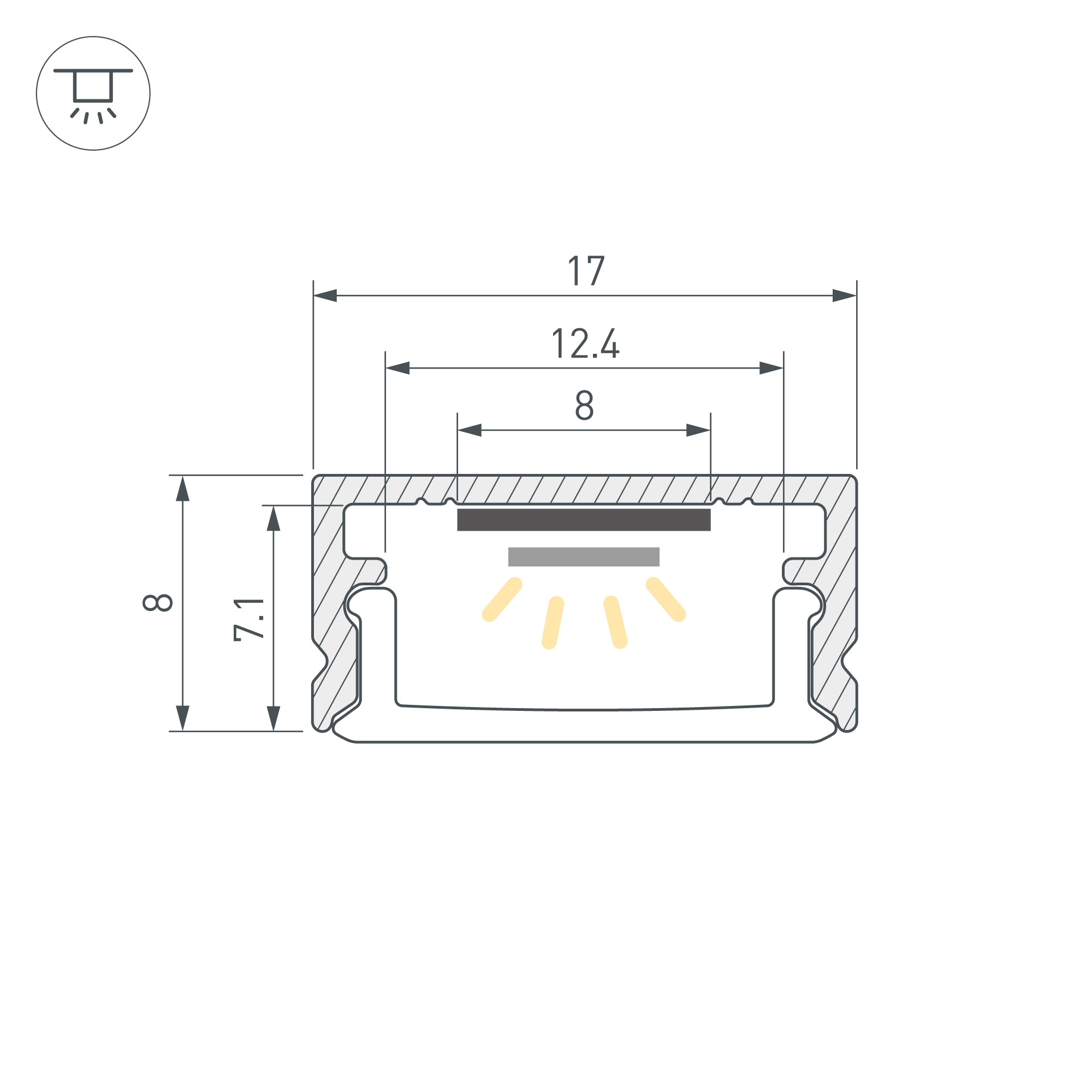 Набор для светодиодной подсветки ARL-KIT-SLIM с предустановленной светодиодной лентой - готовое решение для декоративного освещения интерьера. В комплект входят: накладной профиль из анодированного алюминия, матовый экран со светопропусканием 64,5%, заглушки и держатели, а также открытая светодиодная лента со свободной резкой шириной 8 мм и мощностью 14 Вт/м. Светодиоды SMD 2216 (200 шт/м) теплого цвета свечения (3000 К). Напряжение питания 24 В. Минимальный отрезок 5 мм. Для создания из набора одного светильника необходимо использовать одну глухую заглушку и одну заглушку с кабелем 1 метра и разъёмом 5.5 DC Female. При необходимости отрежьте часть профиля необходимой длины (минимальный отрезок – 5 мм). Разрезать ленту необходимо только в обозначенных местах, отступив от края профиля на 3-5 мм строго по линии резки. Габаритные размеры набора составляют 2000 мм в длину, 17 мм в ширину и 8 мм в высоту. Цена указана за комплект. Отличное решение для создания современных световых проектов.
