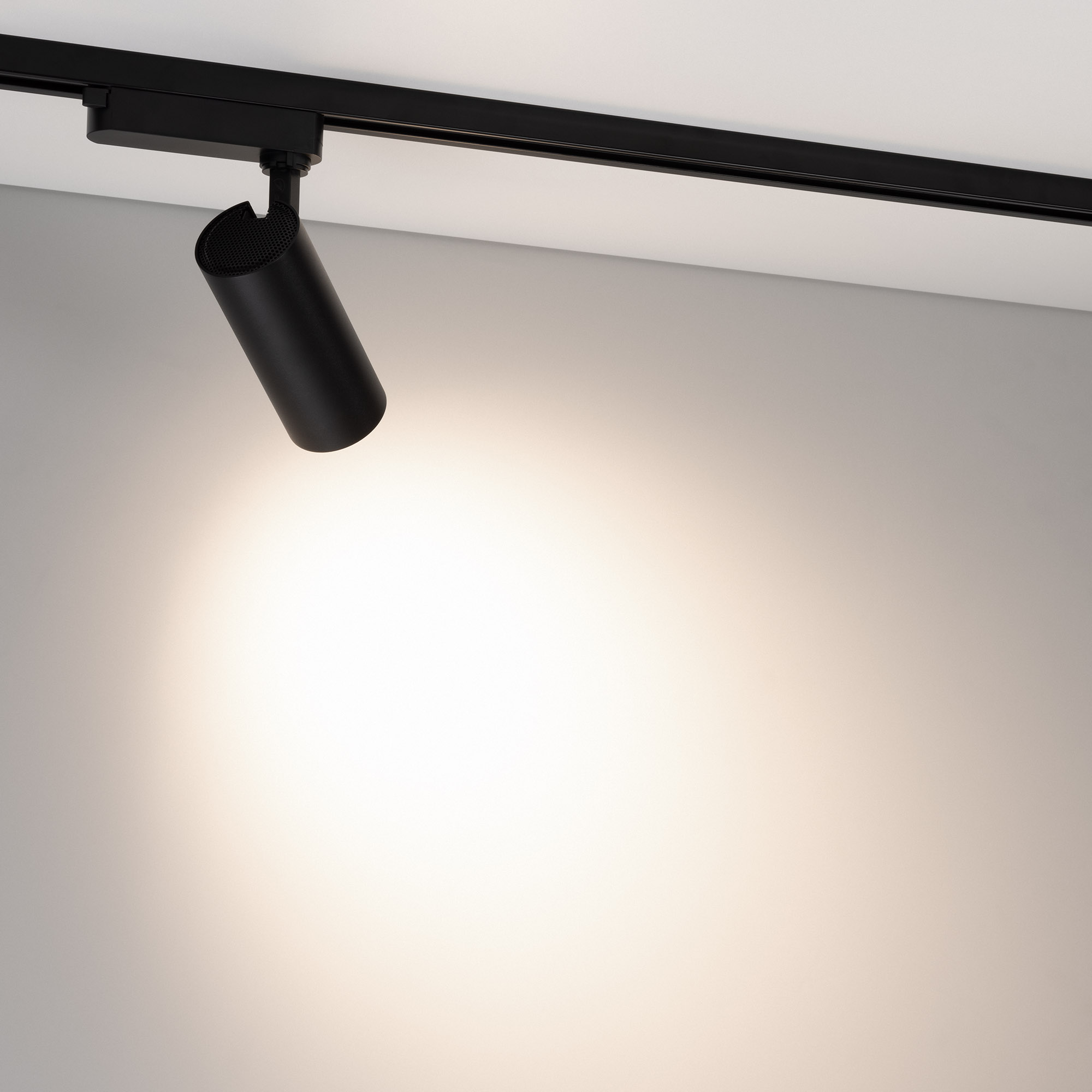 Светильник для треков/шин 2 провода. Мощность 15 Вт, св. поток без решетки honeycomb 1500 лм, 100 лм/Вт, с решеткой honeycomb 990 лм, 66 лм/Вт, дневной 4000 K, CRI>90, угол 55°, напряжение питания 230 В. Черный круглый корпус из алюминия, материал линзы PMMA, степень защиты IP20. Размер: диаметр 60 мм, длина световой части 141 мм. Монтаж на трек 1-фазный. Драйвер встроенный 350 мА 25-40 В, пульсация <5%.