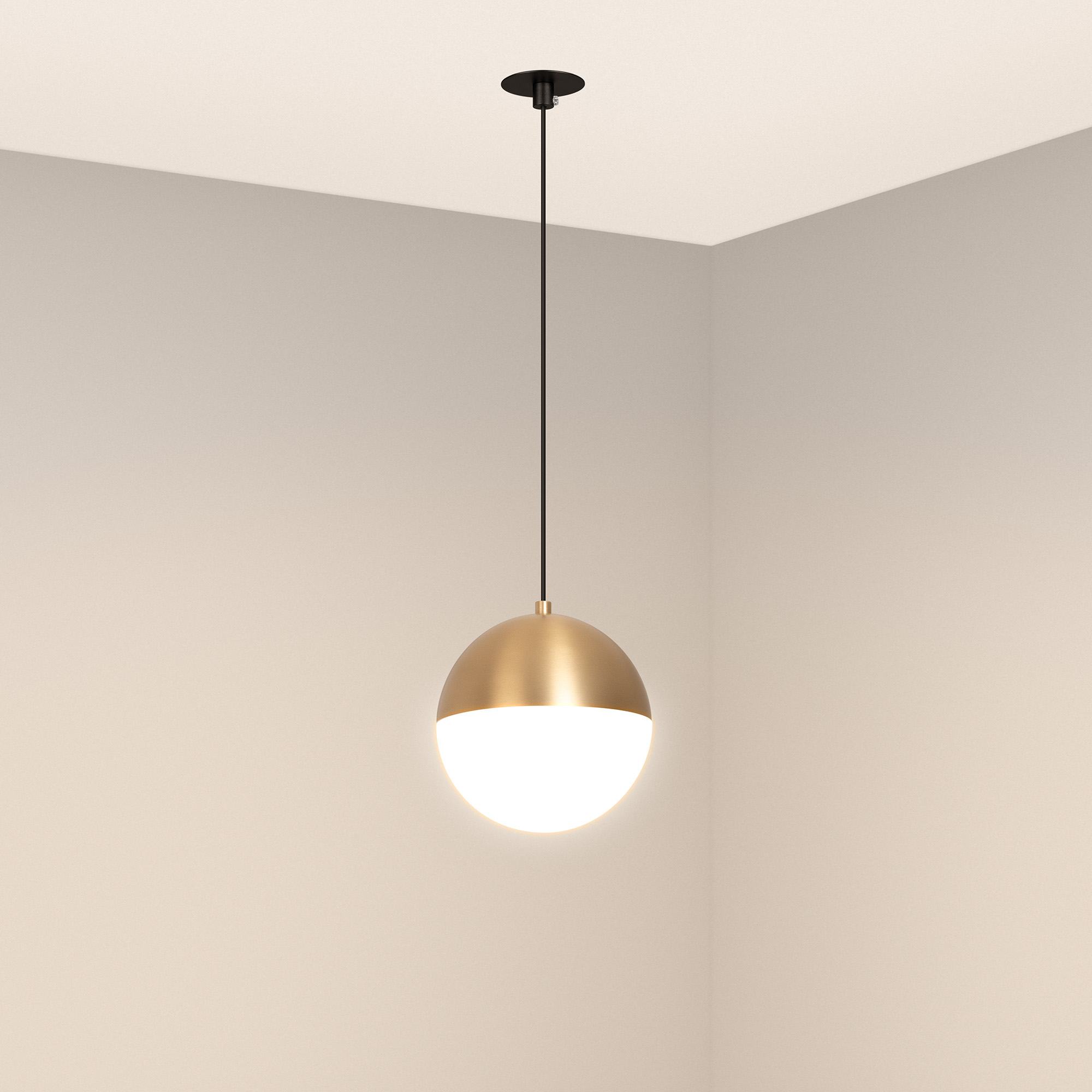 Элегантный встраиваемый подвесной светильник мощностью 11 Вт с дневным белым цветом свечения (4000 К). Потолочная чаша встраиваемая, черного цвета. Матовый плафон диаметром 150 мм с широким углом излучения 170° создает приятное рассеянное свечение и особую теплую атмосферу в любых интерьерах. Золотой корпус на регулируемом подвесе длиной 1500 мм. Высокий индекс цветопередачи (CRI>90) и световой поток 960 лм для качественного декоративного освещения. Минимальный коэффициент пульсации (менее 1%) гарантирует зрительный комфорт.